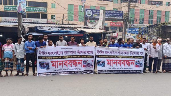 গ্যাস সংকট নিরসনের দাবিতে চাটখিলে মানববন্ধন