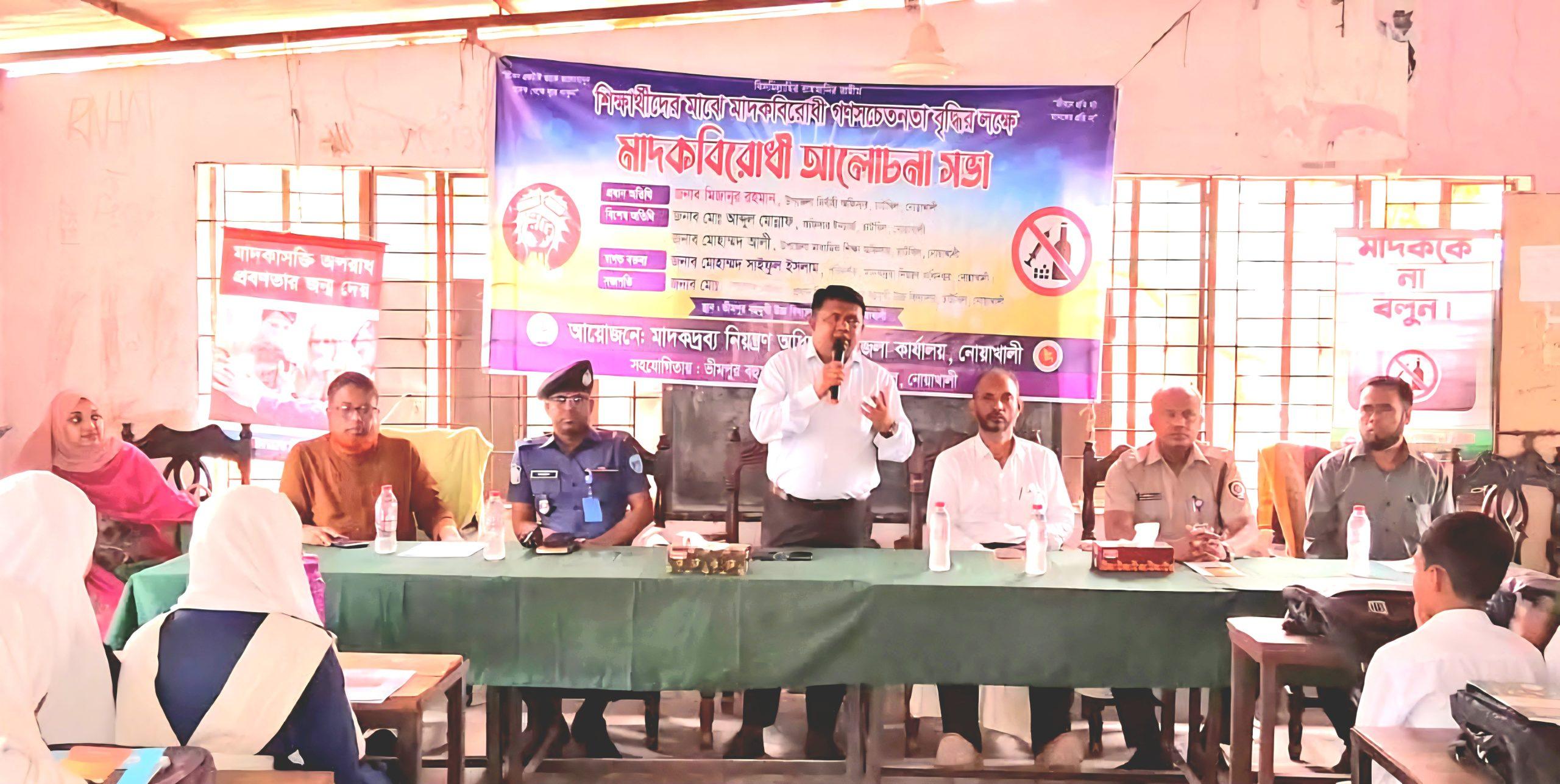 এই সচেতনতামূলক কার্যক্রম সম্পর্কে মাদকদ্রব্য নিয়ন্ত্রণ অধিদপ্তরের নোয়াখালী জেলা কার্যালয়ের উপপরিচালক সুব্রত সরকার শুভ বলেন, “মাদকমুক্ত সমাজ গড়তে শিক্ষার্থীদের সচেতন করা অত্যন্ত জরুরি। শিক্ষা প্রতিষ্ঠানগুলোতে আমাদের নিয়মিতভাবে মাদকবিরোধী হিউম্যান বডি ফেস্টুন, খাতা, কলম ও স্টিকার বিতরণ কার্যক্রম চলমান রয়েছে। এরই ধারাবাহিকতায় আজকের এই আয়োজন।”