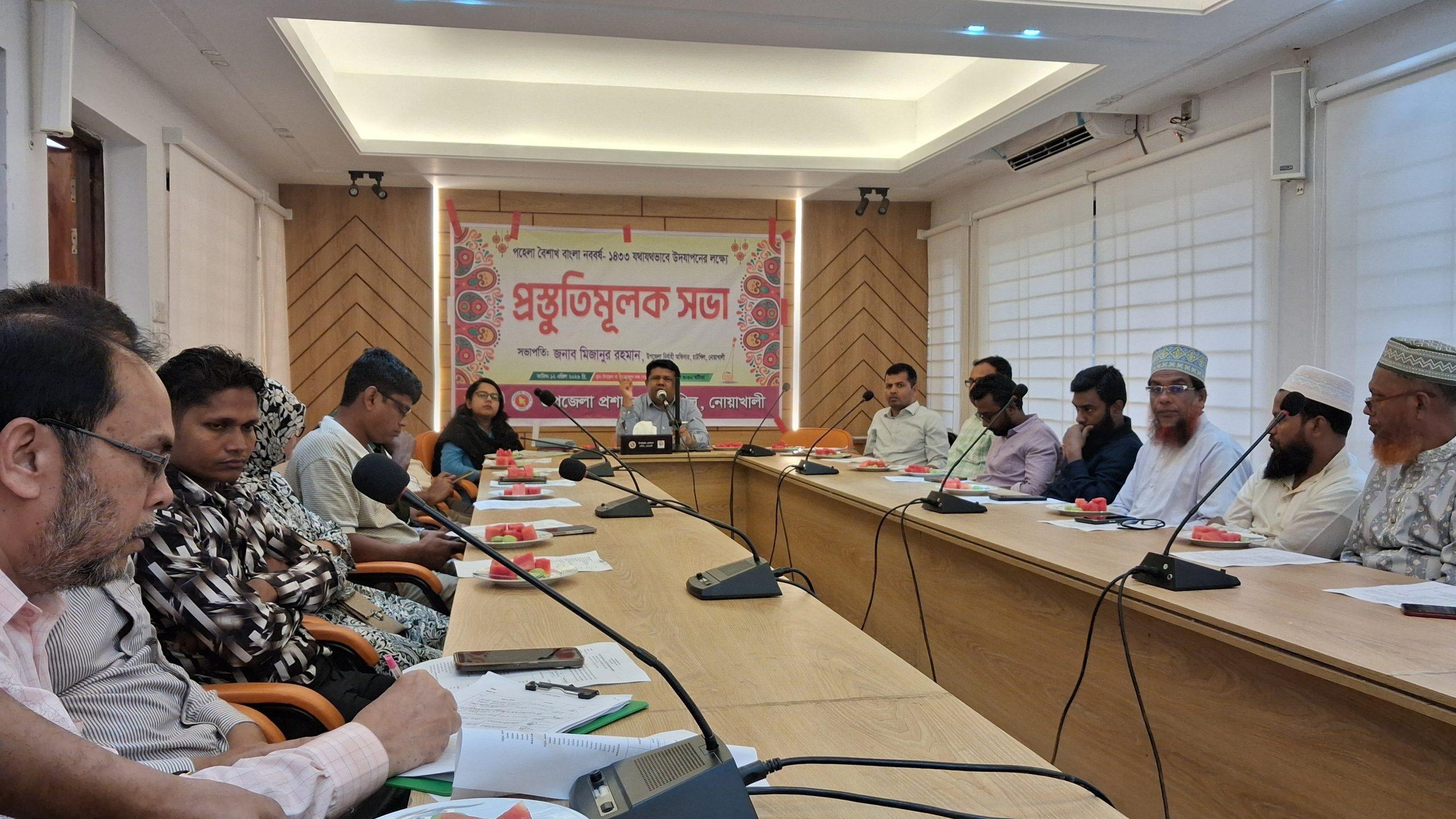 নিরাপত্তা ও জনসেবা নিশ্চিত করতে চাটখিল থানা পুলিশ, ফায়ার সার্ভিস এবং পল্লী বিদ্যুৎ বিভাগকে প্রয়োজনীয় ব্যবস্থা গ্রহণের নির্দেশনা দেওয়া হয়েছে। পরিশেষে, উপজেলা নির্বাহী কর্মকর্তা সকল স্তরের মানুষকে স্বতঃস্ফূর্তভাবে এই উৎসবে যোগ দিয়ে বাঙালির ঐতিহ্যকে তুলে ধরার আহ্বান জানিয়ে সভার সমাপ্তি ঘোষণা করেন।